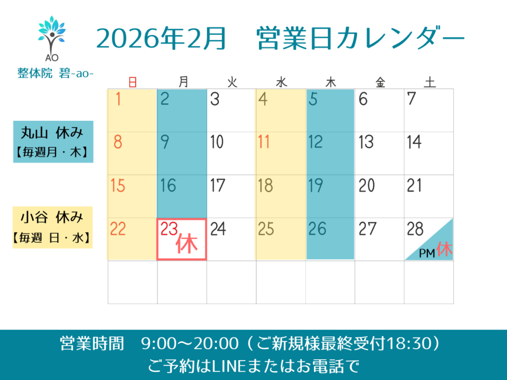 今後とも整体院 碧-ao- をよろしくお願いいたします。